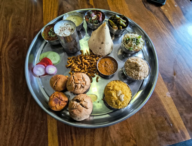 Dal baati thali here tastes just like my grandmother’s recipe—pure comfort.